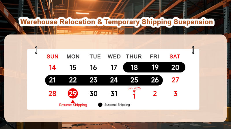 Dear Valued Customers, To enhance our service quality and customer experience, we will be relocating our warehouse from December 18th