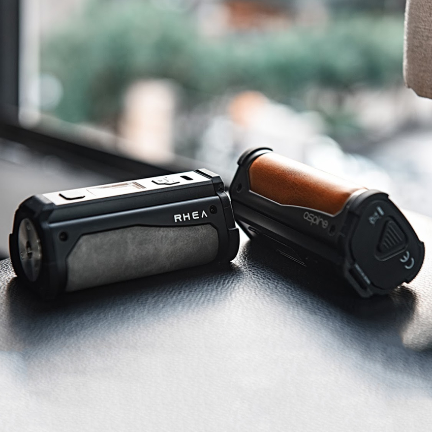 Rhea Mod is Aspire‘s first shock proof Mod. It is a sleek combination of leather and metal which creates a beautifully ergonomic feel in the hand. Aspire Rhea Box Mod is powered by dual external 18650 batteries (batteries are not included), it fires to a 200W maximum output. Aspire Rhea Mod adopts the advanced Aspire ASP chipset, it can provide safety protection. Rhea Box Mod supports WATT/VOLTAGE/BYPASS/TC/TCR/CPS modes and personalized UI setting(screen color, brightness adjustment, puff counter)to satisfy all your vaping needs. The Type-C cable of Aspire Rhea provides a quick 2A charge. The mod matches to tanks below 28mm, without any overhang.