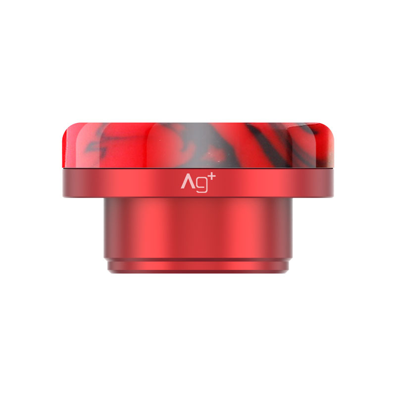 The drip tip is composed in Resin and of AG+. The AG+ is in patented polycarbonate which contains ions in silver (AG+) which kills 99% of bacteria (Escherichia coli et Staphylococcus aureus). The Ag+ is widely used in communities (like hospitals) which for example uses interrupters, electrics, bacteria sources.
