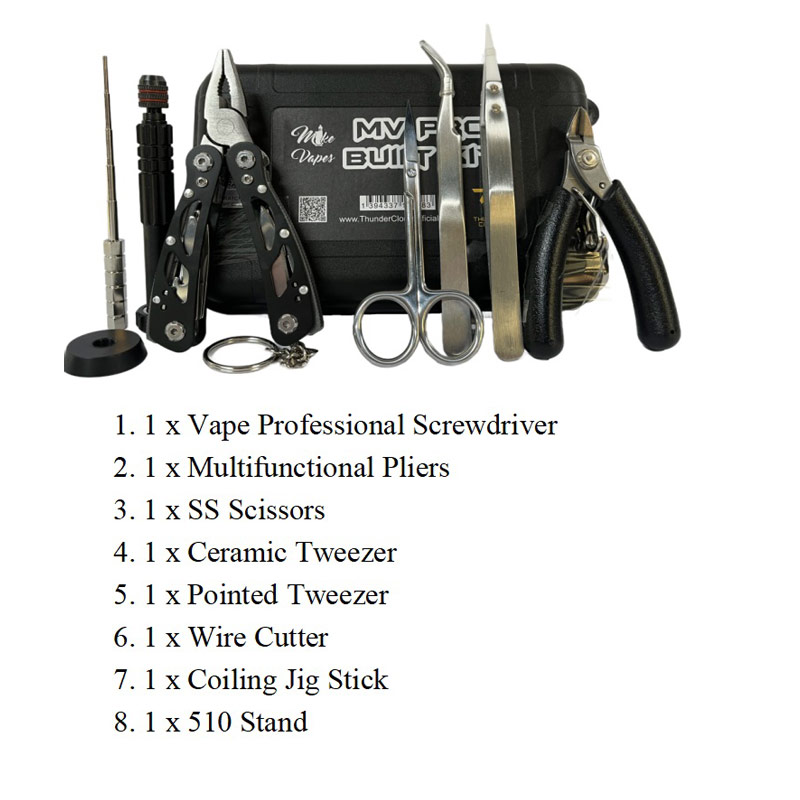 The MV PRO Built Kit has you covered for DIY LOVER building needs, The Tool Kit for building and winding coils. and covered for all of your building needs. The kit includes ceramic tweezers, as well as angled stainless tweezers for easy coil and wick maneuvering. You also get wire cutters, folding scissors, as well as a multi-functional screwdriver. The screwdriver can also be used for wrapping your coils to four different diameters.